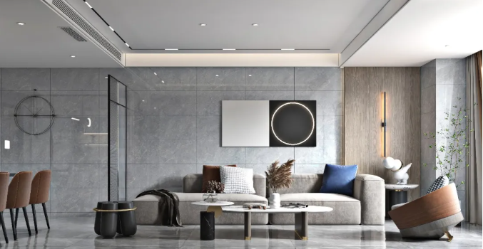去繁从简的家居设计,干净利落的线条布局,墙色灯光搭配400X800mm通体瓷抛石中板-那波利构筑的柔和氛围,既保持了家的温馨,又加入了极简的艺术气息 。